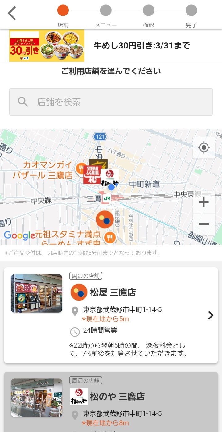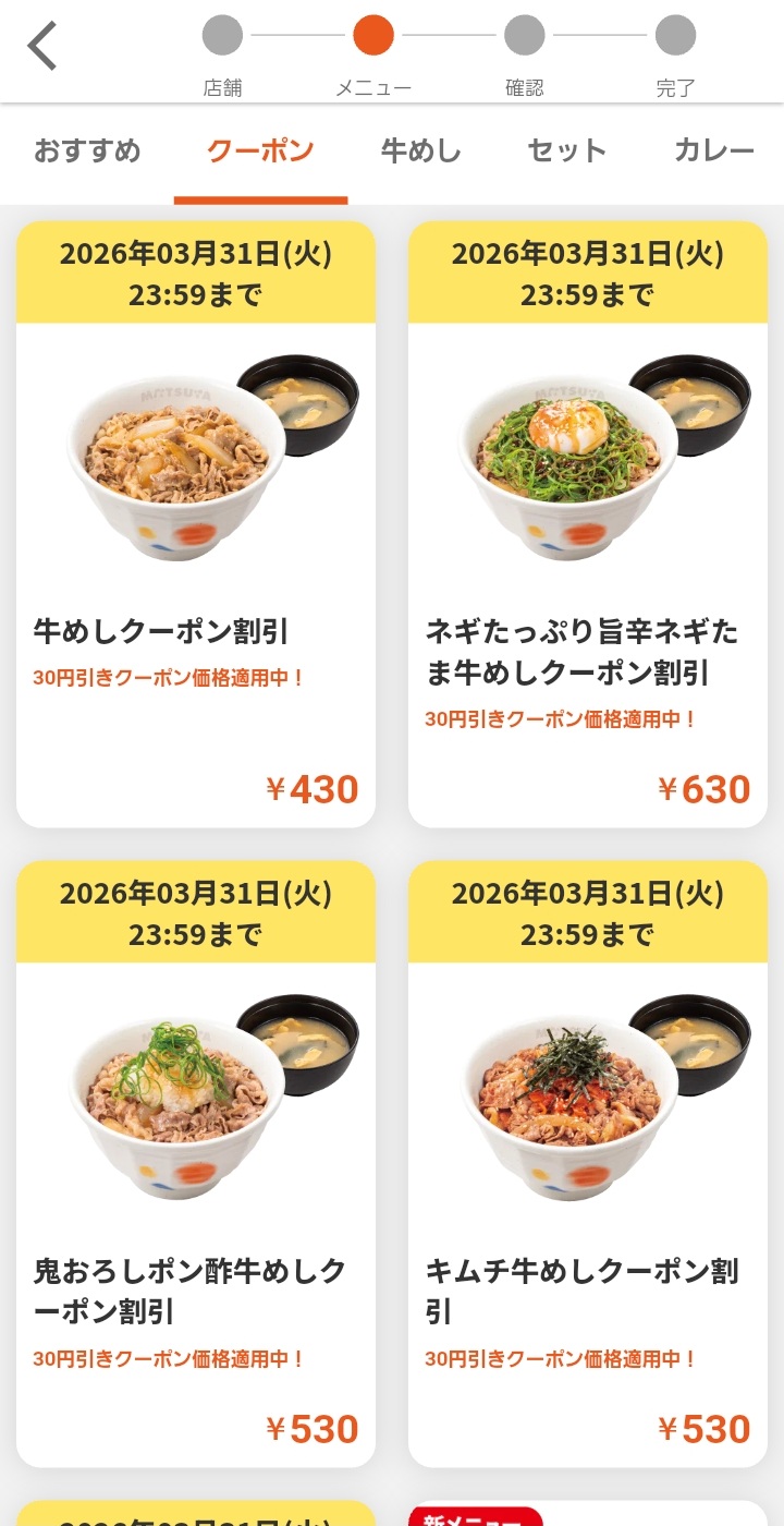 ④店舗選択後、クーポンメニューが表示されますので、ご希望のメニューをお買い求め下さい。