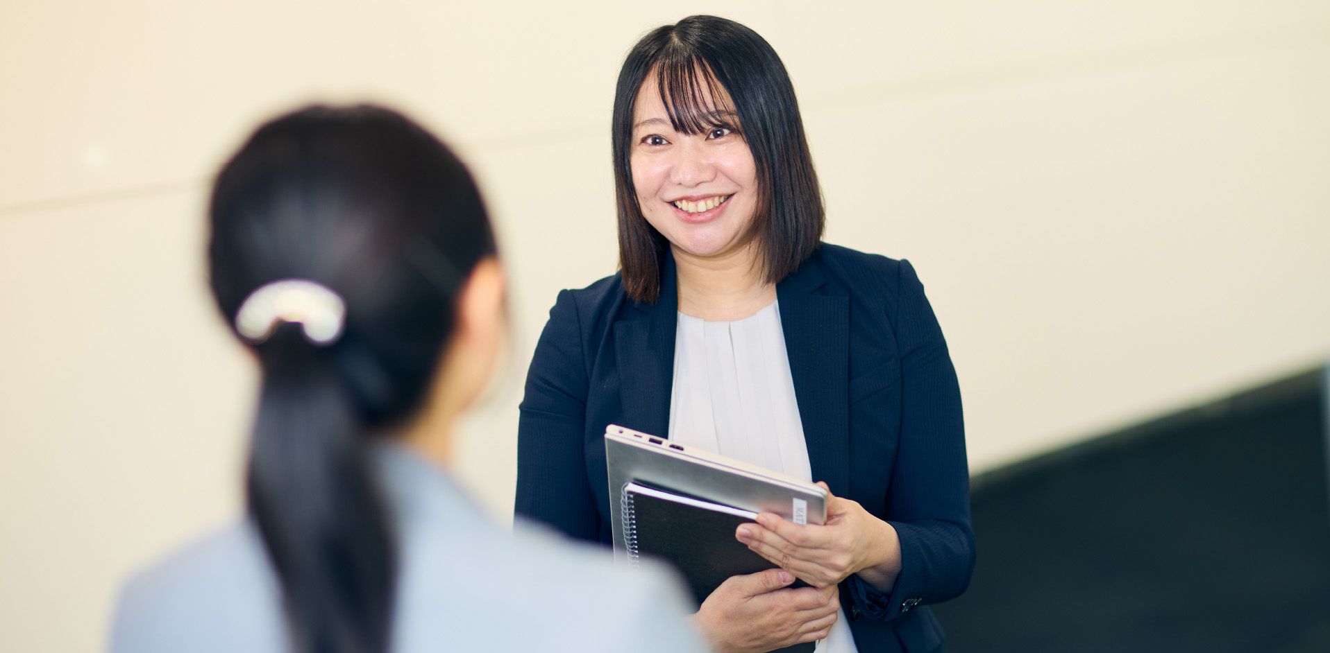 法律学のゼミで行われていた討論会での経験が仕事に活きていると感じます。様々な事例が起きうる法律の世界には、決まった正解があるわけではありません。だからこそ、じっくりと相手の話を聞き、討論の幅を広げていくことが求められました。そこで得た「傾聴力」は、店舗の運営において、スタッフの皆さんから店舗運営に関する意見を聞き、新人社員の相談を聞くときに大いに重宝したと思います。さらに、耳を傾ける姿勢は店舗での信頼関係を深めることにも役立ちました。スタッフの皆さんが日常生活の些細なことであっても報告してくれるようになり、シフト管理を調整しやすくなるだけでなく、お店の雰囲気自体も良くなっていったのです。本部勤務となった今でも、イベント企画時はスタッフの意見を盛り込めるように、店舗を訪れた際には積極的に声をかけるようにしています。
