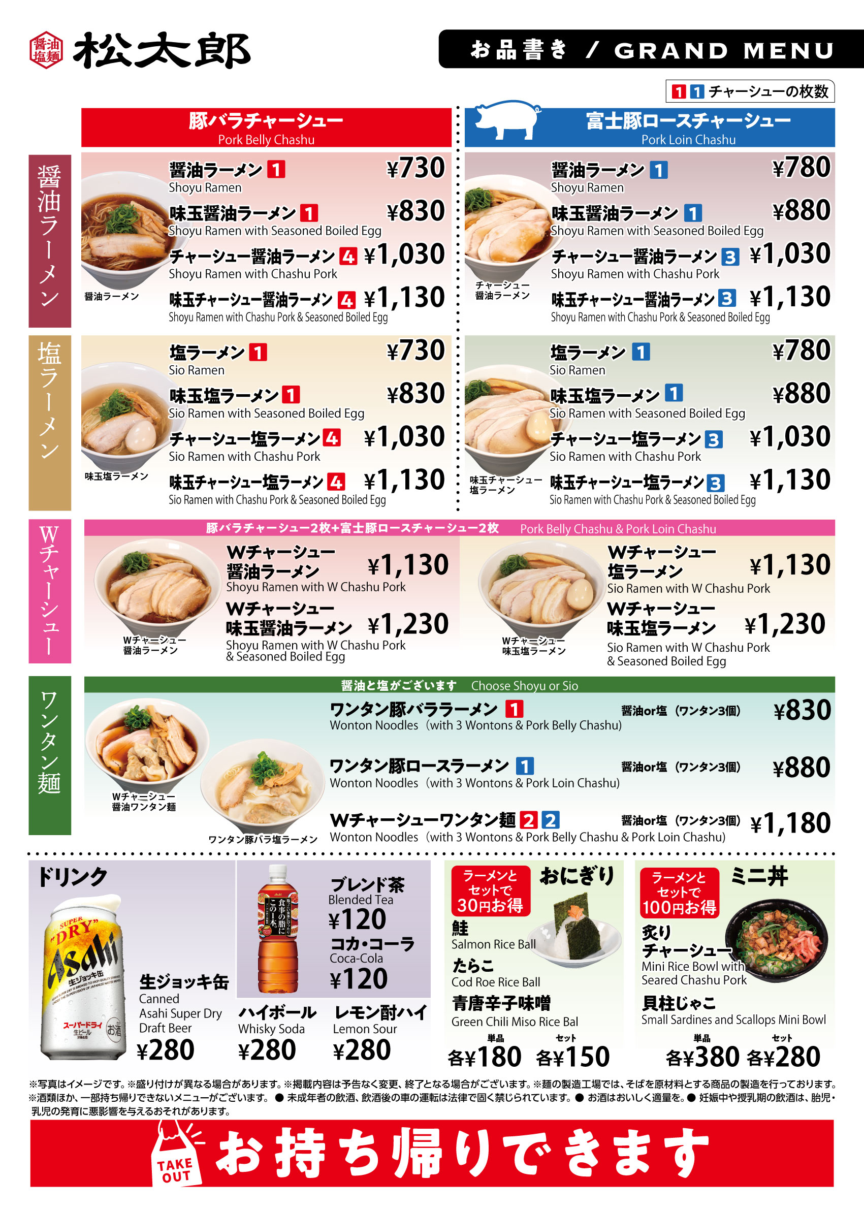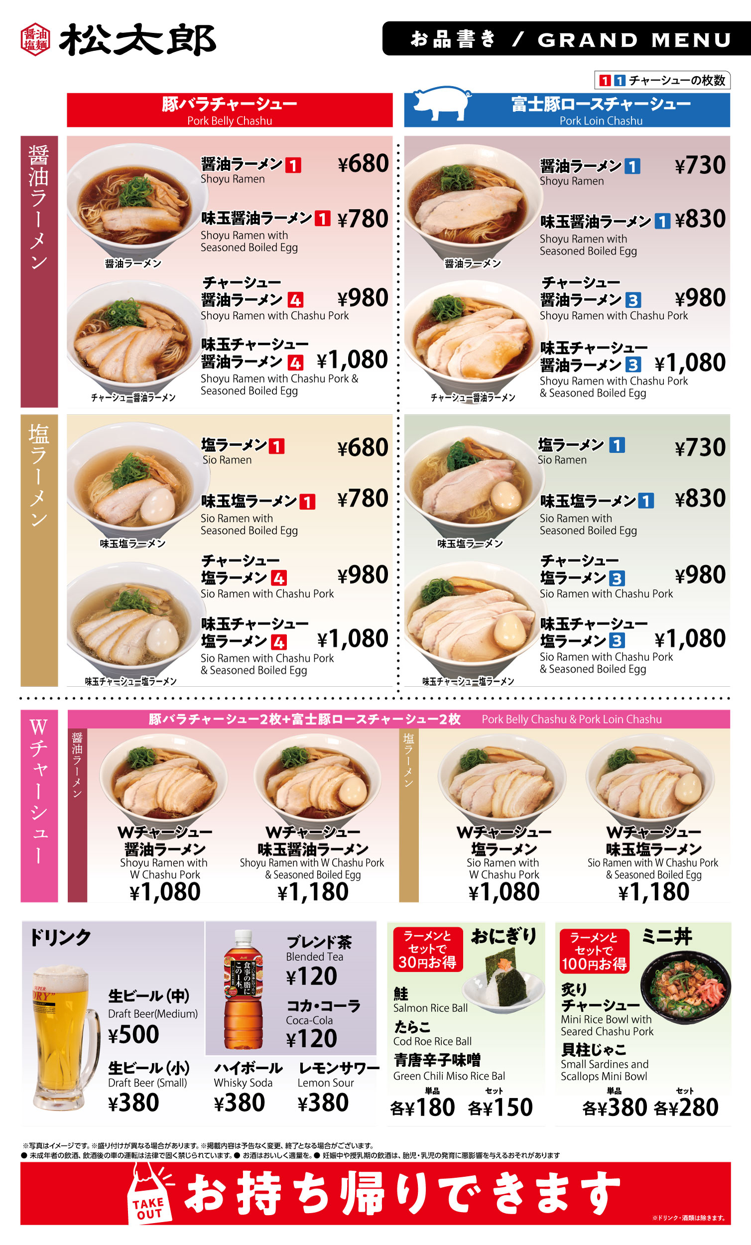 ※一部メニューはお持ち帰りいただけません。