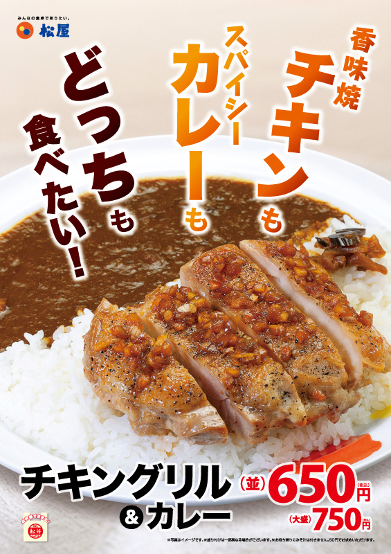※お持ち帰りできます。持ち帰りの場合、みそ汁は別途50円頂戴します。 ※上記商品全て税込み価格です。 ※チキングリル&カレー(大盛)はカレールーとライスが大盛です。【発売日】