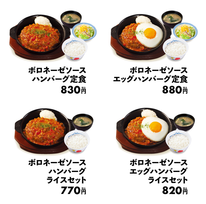 肉汁溢れる松屋の人気ハンバーグに、「ボロネーゼ」味が登場します。